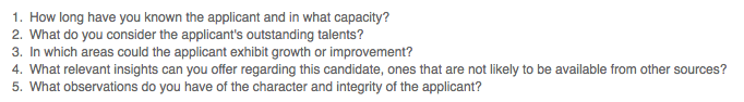 Example: Click here for a sample from one program giving suggestions on what should be in the letter. If we barely know one another, it's unlikely I'm going to be able to provide convincing answers to these questions.
