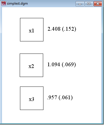and MPlus produces an accompanying diagram. Immediately after obtaining output, you can use <Alt-D> to see the model diagram, including the estimated variances.
