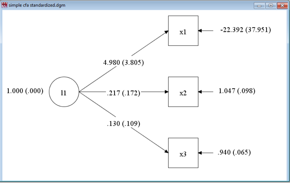 Notice also (by looking at the MPlus diagram, using Alt-D) that this model includes a correlation between x2 and x3, but does not report this in the Model Results. To see a fuller specification of the very same model, try: