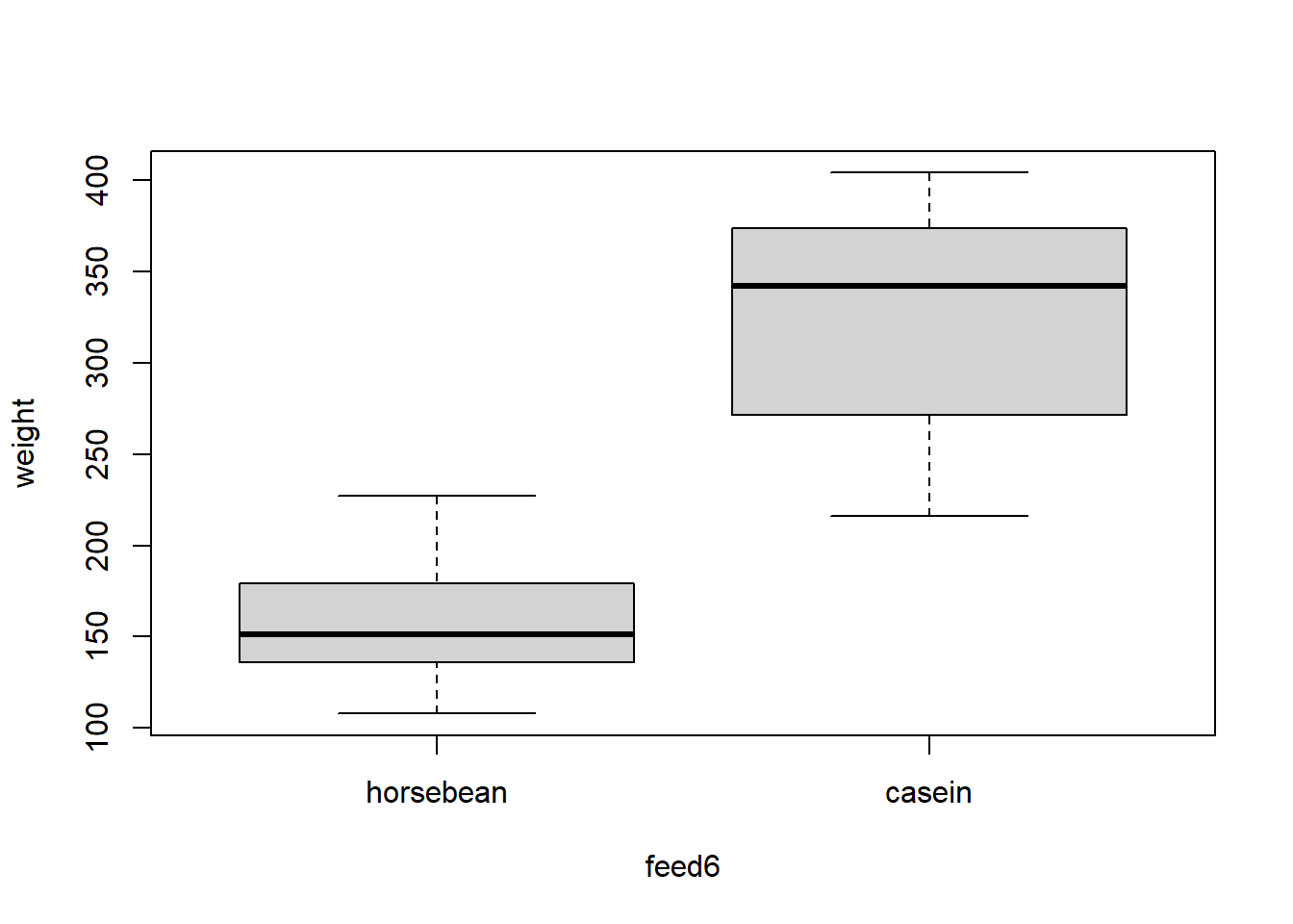 We can look at the example data set chickwts, which includes both