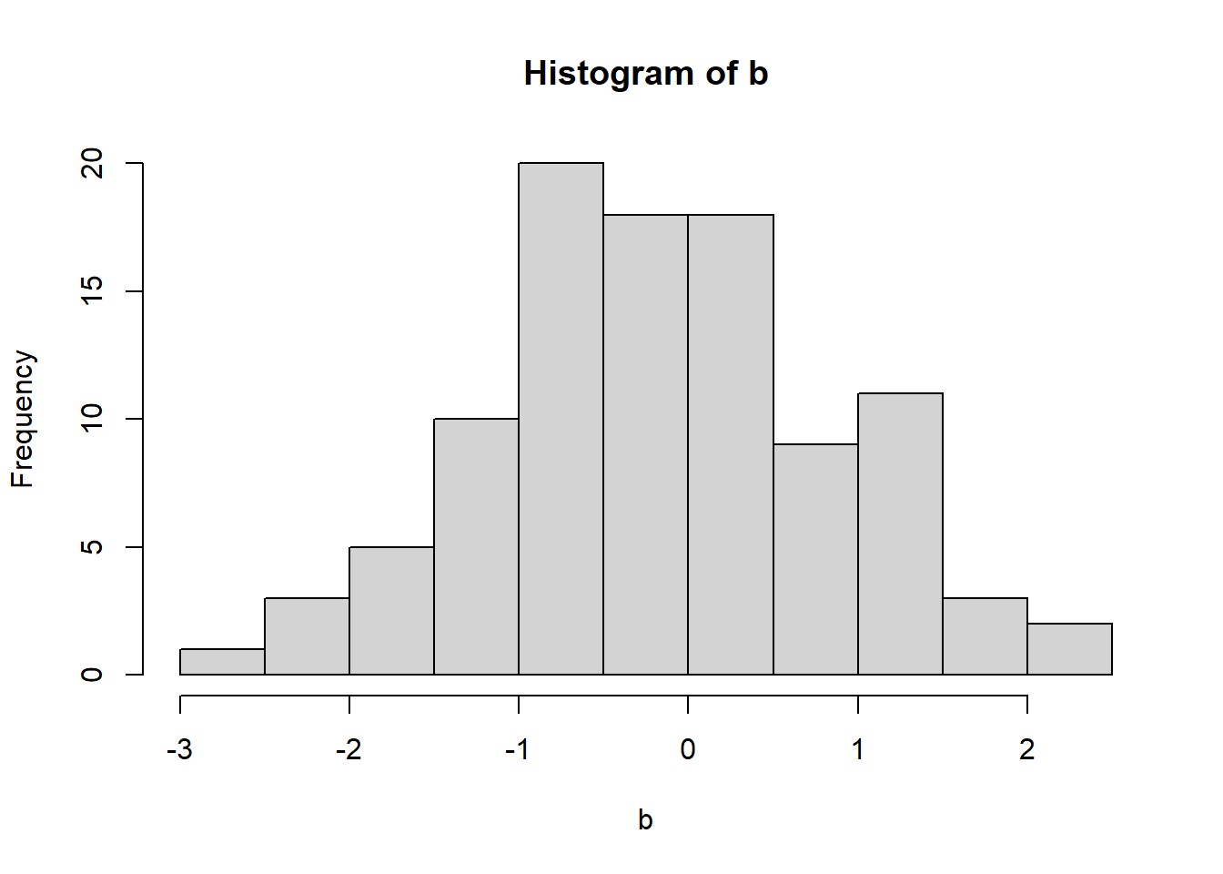 b <- rnorm(20, mean=3, sd=1)