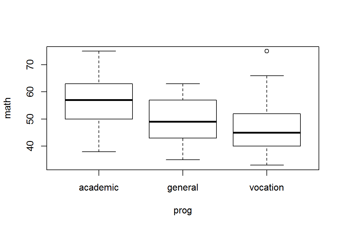 Anova models work in the same way. Note that prog is stored as a factor - this is crucial to getting the correct model.