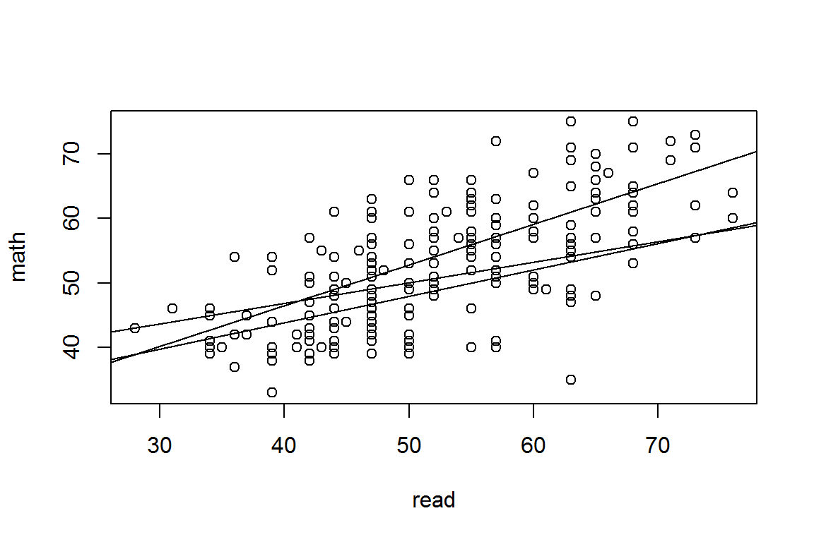 ## lm(formula = math ~ prog + read + prog:read, data = hsb)