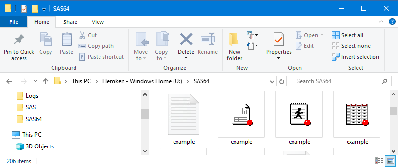 SAS program, data, and output files can be opened directly from Windows Explorer by double-clicking on the file. One advantage of launching SAS files in this way is that the working directory is automatically set to the location of the file. This can simplify your SAS code, because you can skip specifying paths for input and output files.