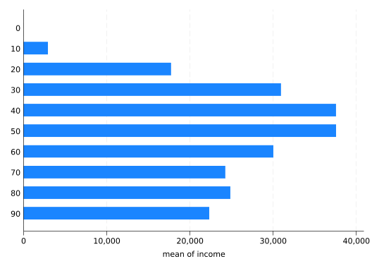 For decades we want the cutpoints to be 9, 19, 29 up through 99 (recall that in the ACS 93 really means “93 or older”). You can do that with: