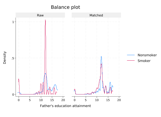The next question is whether the matching actually made the treated group and the control group more balanced. To see how the treatment model affects balance, start with a simpler model.