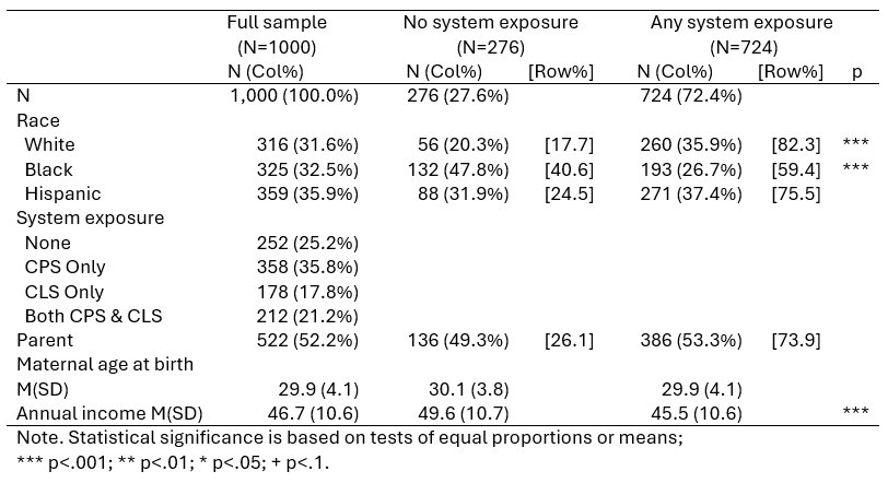Full sample (N=1000) No system exposure (N=276) Any system exposure (N=724)